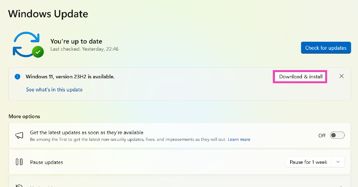 ステップ3:を選択しますダウンロードしてインストールします保留中の更新の横にあるオプション。保留中の更新が表示されない場合は、クリックしてください更新を確認してください。