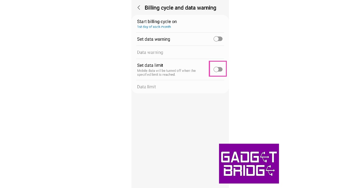 ステップ5:トグルバーをオフにしますデータ制限を設定します。