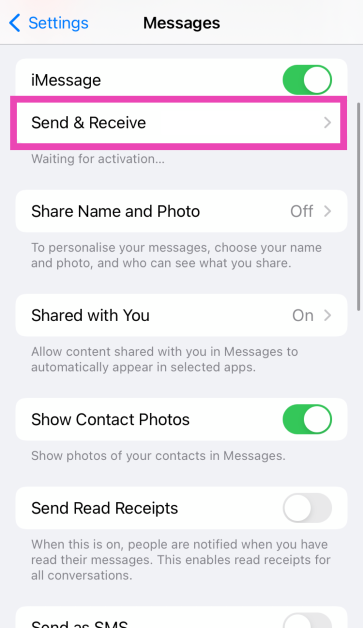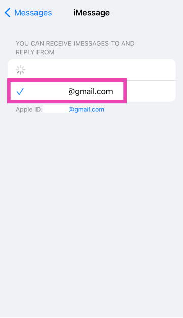 Imessageがデバイスでシームレスに動作することを確認するには、メッセージ設定の「送信および受信」セクションにApple IDメールを追加します。