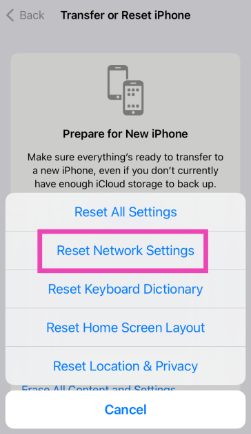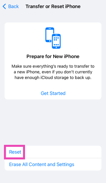 ステップ2:タップしますデバイスを転送またはリセットします。
