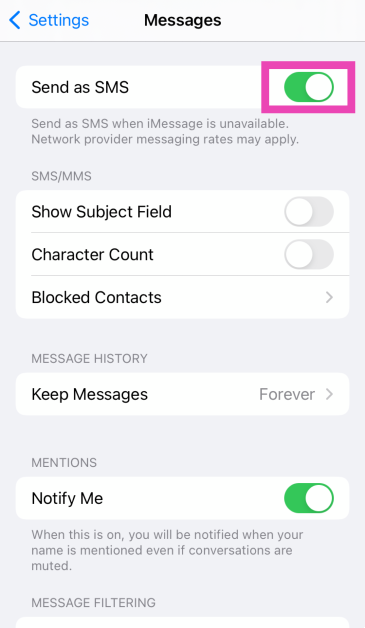 ステップ2:次のトグルスイッチをオンにしますSMSとして送信します。