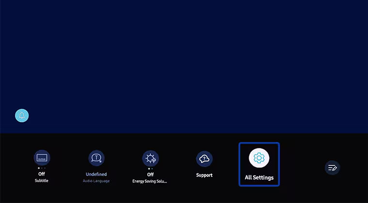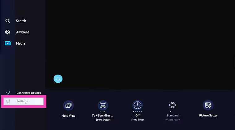 ステップ1:を押しますクイック設定ボタンリモートコントロールで選択します設定。リモートコントロールに専用の設定ボタンがない場合は、選択します。設定あなたのテレビからホームページ。