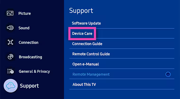 ステップ3:行きますサポート選択しますデバイスケア。