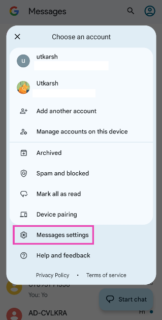 Googleメッセージを使用して、AndroidでOTPを自動的に削除します