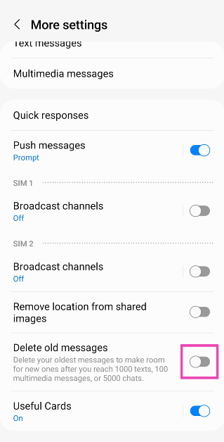 ステップ4:トグルスイッチをオンにします古いメッセージを削除します。