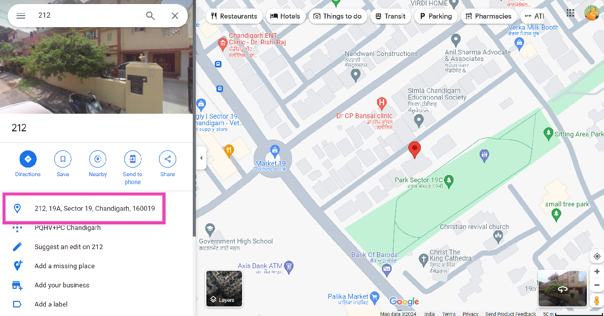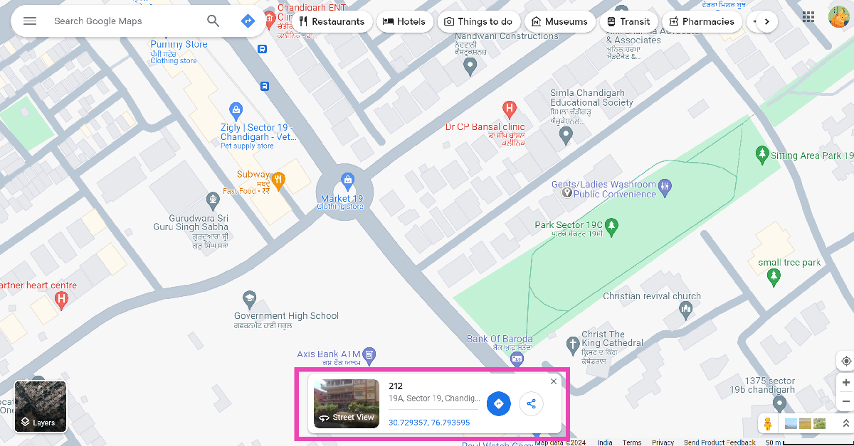 ステップ4:クリックボックスに表示しますフルアドレスその場所とともにストリートビュー画像。