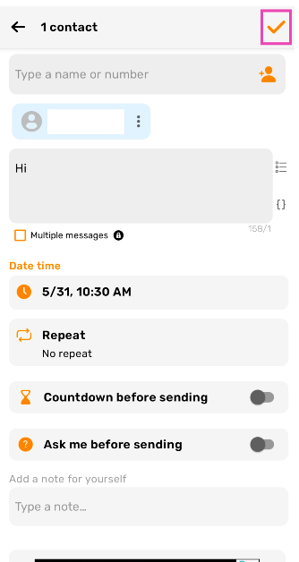 ステップ4:受信者を入力します番号そして文章それぞれのフィールドで。