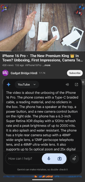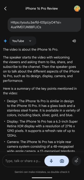 GeminiのYouTube拡張機能を使用してビデオを要約できます。チャットボットは、ビデオに関連する質問にも答えることができます。