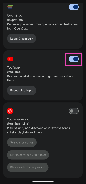 ステップ4:次のトグルスイッチをオンにしますYouTube。