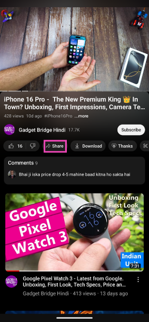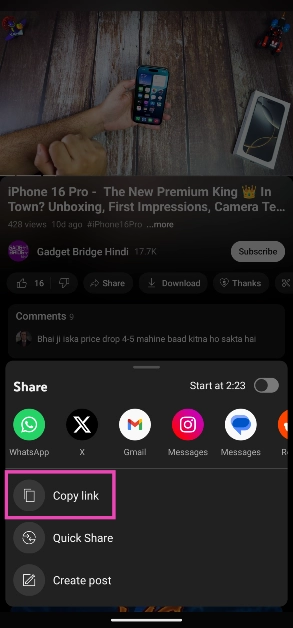 ステップ2:ヒットします共有アイコンとコピービデオへのリンク。