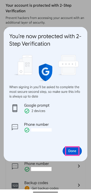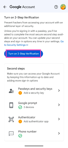 Googleでは、PassKeys、Prompts、Google Authenticatorアプリ、電話番号、バックアップコードを使用して自分自身を確認できます。