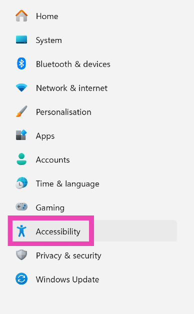 ステップ1:行きます設定選択しますアクセシビリティサイドバーから。