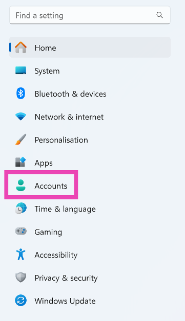 ステップ2:に切り替えますアカウントタブ。