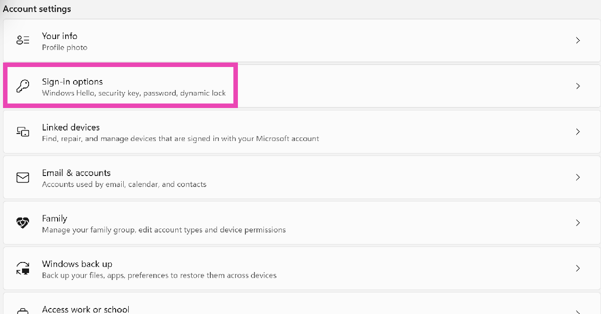 ステップ3:行きますサインインオプション。