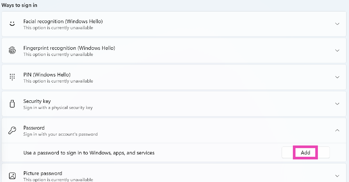 ステップ4:のオプションを展開しますパスワード。