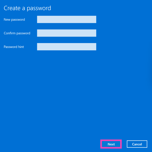 ステップ6:あなたの希望を入力してくださいパスワード。次のテキストフィールドでそれを確認し、ヒント必要に応じて。