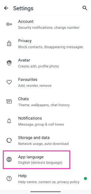 デフォルトでは、WhatsAppはデバイスの言語に従います。これを変更することでこれを変更できますwhatsapp設定> langauges。