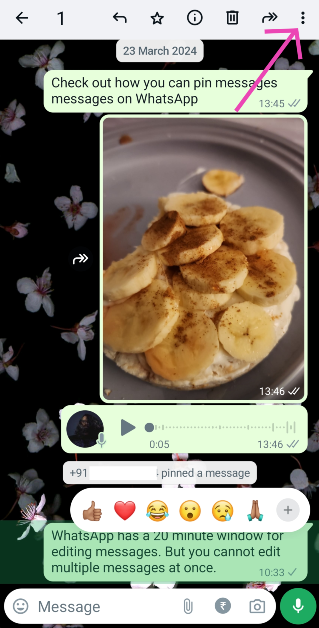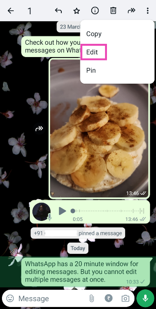 - WhatsAppメッセージは、送信されてから15分以内にのみ編集できます。この時間制限の後、「編集」オプションは使用できなくなりました。