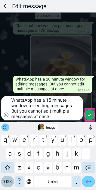 ステップ6:タップしますティックアイコンメッセージを更新します。