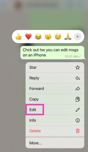 ステップ2:ロングプレス編集して選択するメッセージ編集ポップアップメニューから。