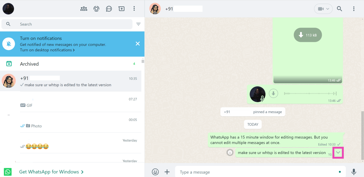 メッセージの編集中に留意する必要があることがいくつかあります。これらの条件が満たされていない場合、WhatsAppでメッセージを編集できない場合があります。