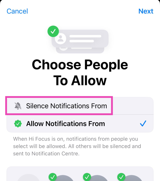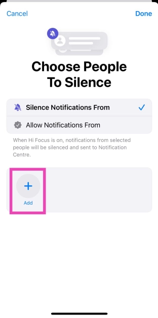 連絡先にサイレント着信音を設定するか、カスタマイズされたフォーカスモードを作成して、連絡先からすべての通知をミュートすることができます。