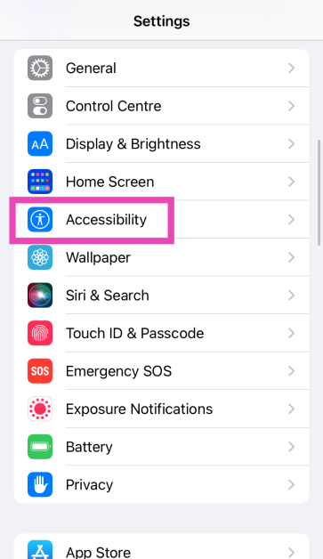 ステップ1:行きます設定選択しますアクセシビリティ。