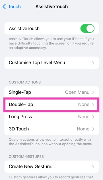 ステップ4:選択しますダブルタップでカスタムアクションカテゴリ。