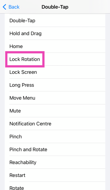 行きます設定>アクセシビリティ>タッチ>アシストタッチ>ダブルタップロック回転を選択します。これで、アシストボールをいつでもダブルタップして、ポートレートオリエンテーションロックを切り替えることができます。