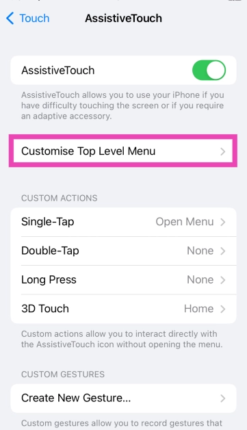 ステップ4:選択しますトップレベルのメニューをカスタマイズします。