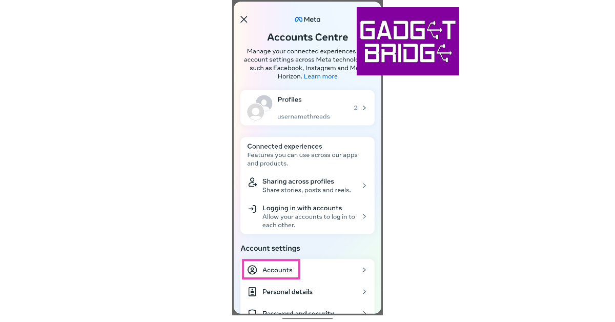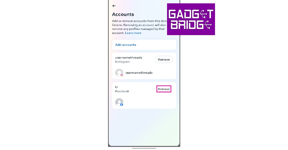 行きますプロファイルメニュー>設定とプライバシー>アカウントセンター>アカウント選択します取り除くFacebookプロフィールのオプション。