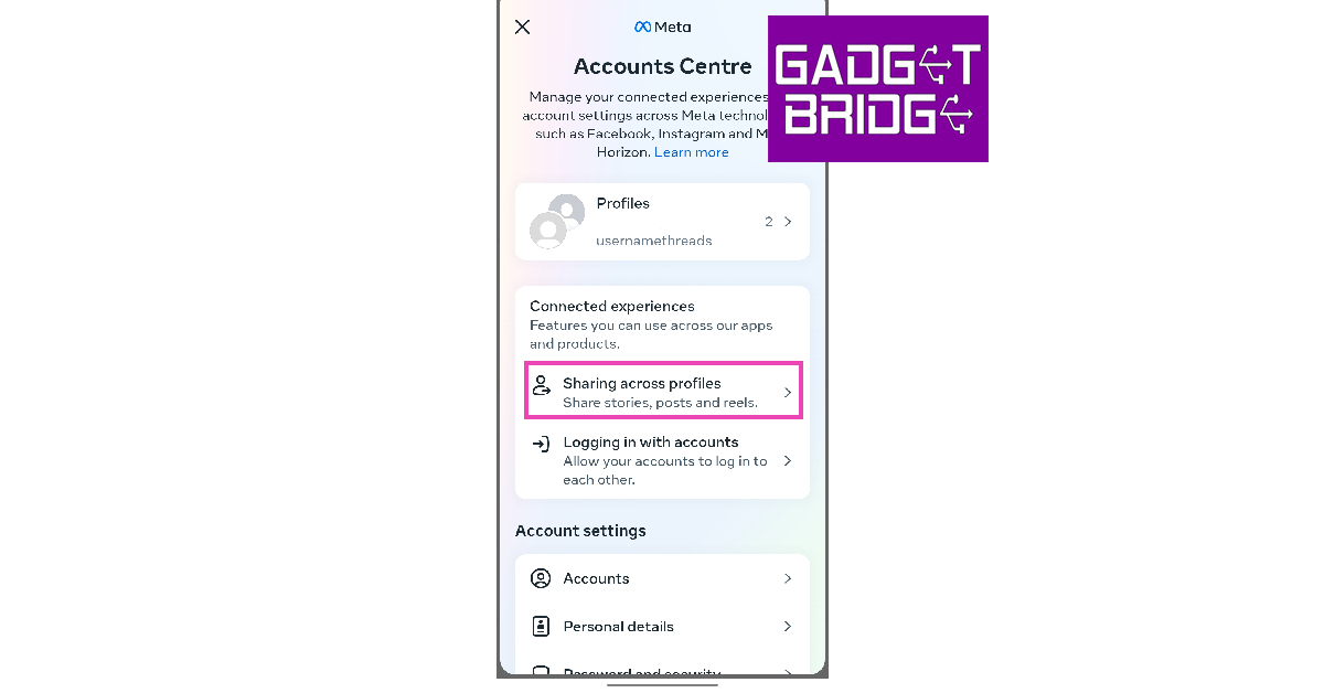 行きますメニュー>設定とプライバシー>アカウントセンター>接続されたエクスペリエンス>プロファイル間の共有> InstagramInstagramストーリーとInstagramの投稿のトグルスイッチをオフにします。