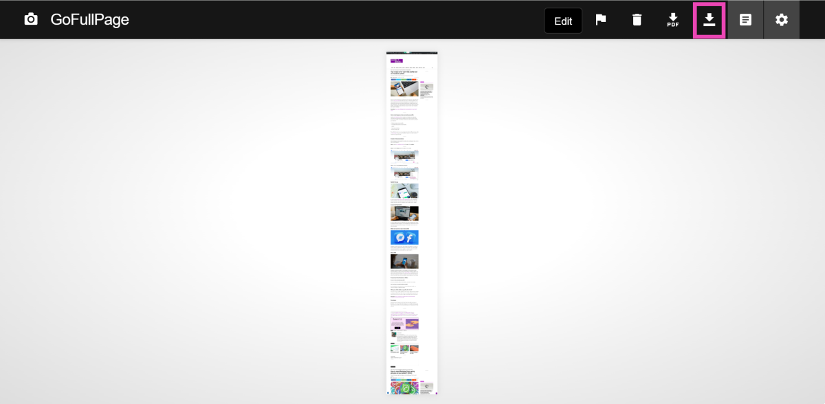 ステップ5:ヒットします下向きの矢印アイコンスクリーンショットを保存します。また、PDFとしてスクリーンショットを保存することもできます。