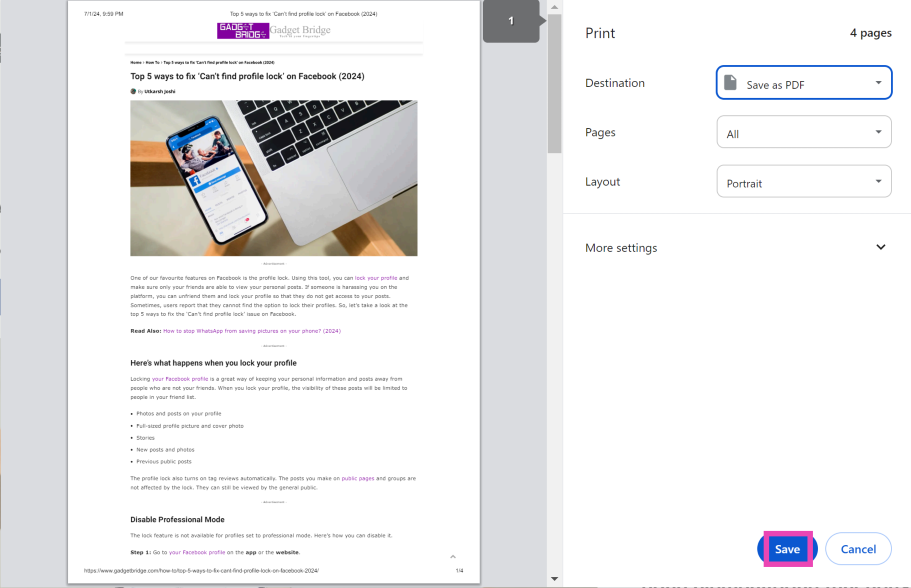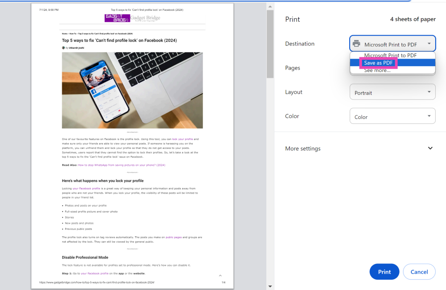サードパーティのアプリや拡張機能をインストールしたくない場合は、WebページをPDFとして保存することを選択できます。すべての主要なWebブラウザは、このオプションを「印刷」セクションで提供しています。 WebページをHTMLドキュメントとして保存することもできます。ページ全体をキャプチャする唯一の非ネイティブな方法は、複数のスクリーンショットを撮影し、写真編集アプリでそれらを一緒に縫うことです。ただし、それはあまりにも面倒なので、サードパーティのアプリを使用することをお勧めします。