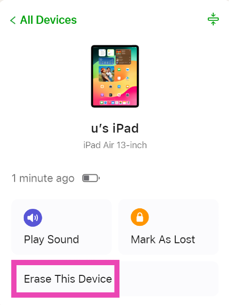 iCloudで私のページを見つけて、Apple IDを使用してログインし、iPadを選択して、「このデバイスの消去」を押します。