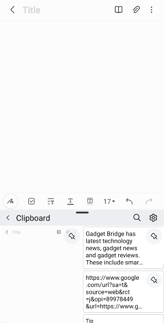 携帯電話のクリップボードの最新エントリは、メモに貼り付けられます。
