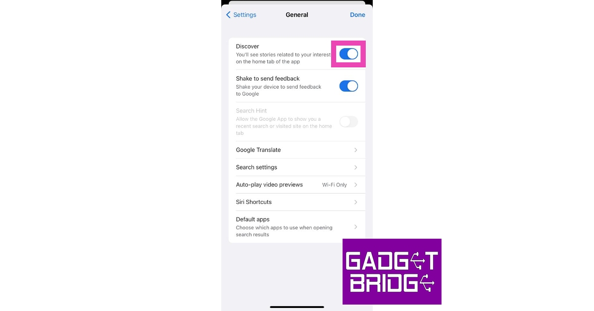 ステップ3:のトグルスイッチをオフにしますGoogle発見。