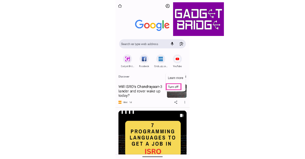 Androidのホームページ設定からGoogle Discoverを無効にします