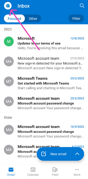 AndroidアプリにアーカイブされたOutlookメールにアクセスします