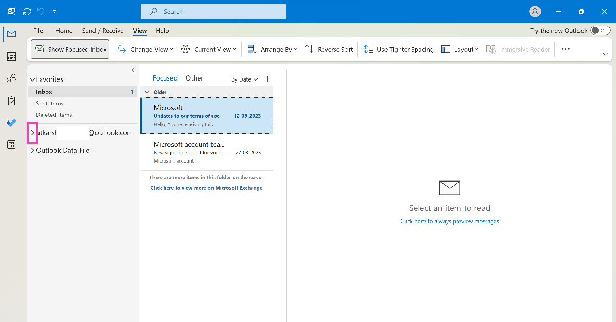 ステップ1: 打ち上げWindows PCのOutlookアプリ。