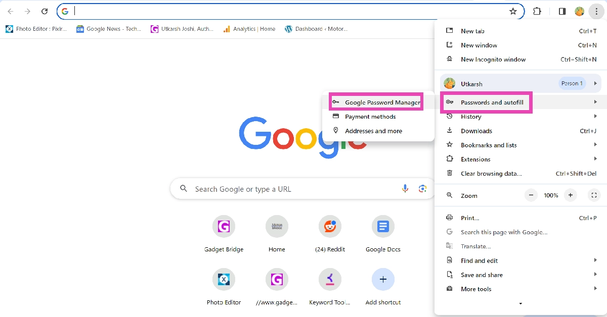ステップ2:行きますパスワードとオートフィル> Googleパスワードマネージャー。
