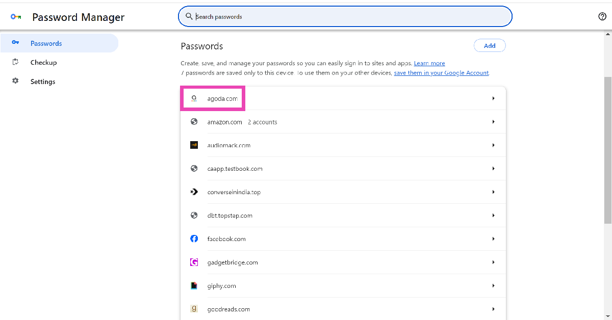 任意のデバイスでpasswords.google.comに移動して、Googleパスワードマネージャーで保存したすべてのパスワードを表示します。