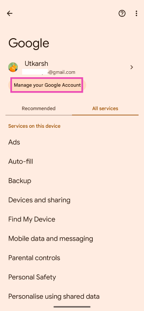 ステップ2:タップしますGoogleアカウントを管理します。