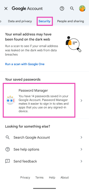 AndroidスマートフォンのGoogle Password Managerにアクセスすることもできます。パスワードは、Googleアカウントの使用に署名されているすべてのデバイスに同期されます。携帯電話でパスワードを表示および管理する方法は次のとおりです。
