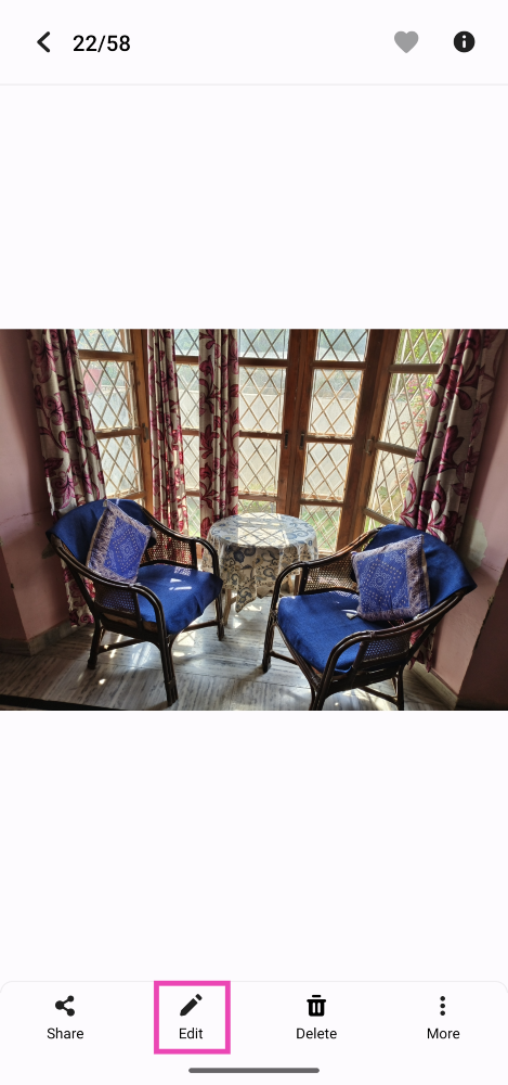 ステップ1:ネイティブのSamsungギャラリーアプリでぼやけている写真を開き、編集画面の下部にあるオプション。