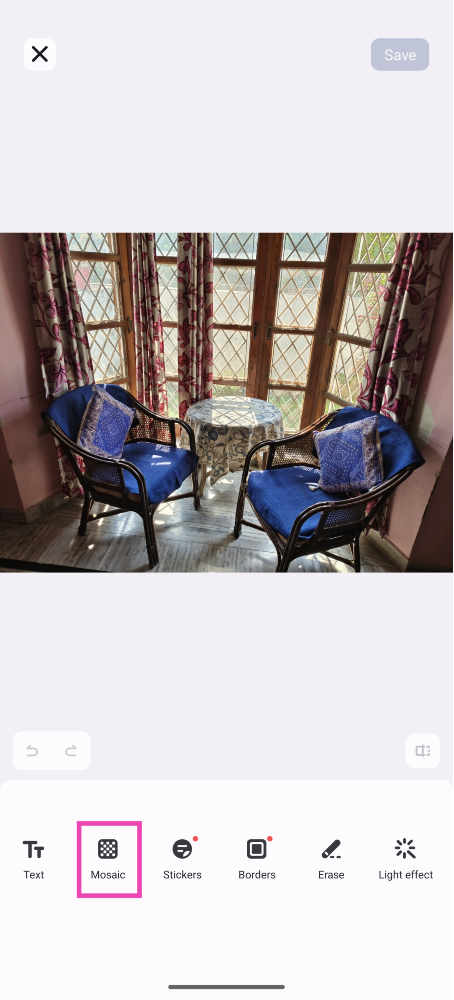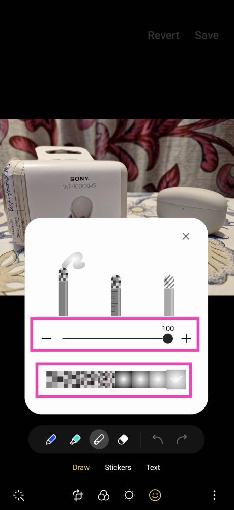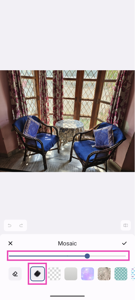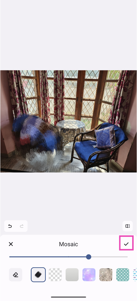 モザイクブラシツールを使用して、Androidスマートフォンの写真の一部をぼやけします。オプションのリストから適切なぼかしパターンと強度レベルを選択します。