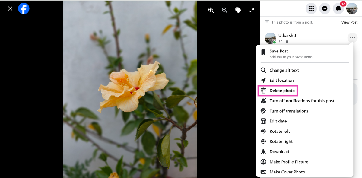 ステップ1:Facebookプロフィールに移動して開きます写真削除したい。
