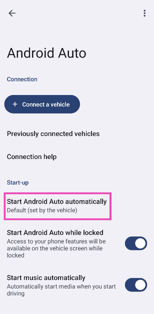 あなたの電話で、行きます設定>接続デバイス> Android Auto> Android Autoを自動的に開始します「最終ドライブで使用する場合」を選択します。