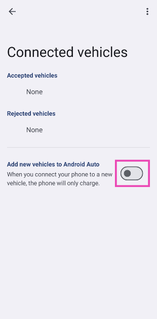 ステップ5:前のページに移動して、次のトグルスイッチをオフにしますAndroid Autoに新しい車両を追加します。