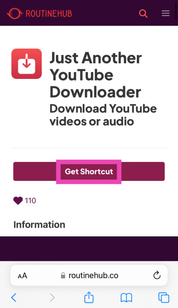 ステップ1:ダウンロードしてください別のYouTubeダウンローダー(Jayd)iPhoneのショートカットこのリンクを使用します。